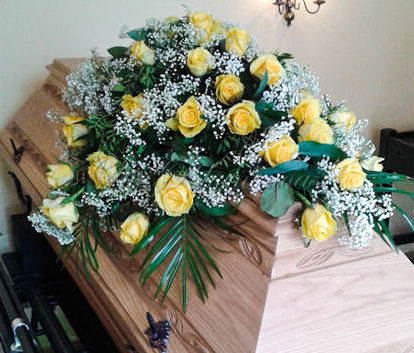Ja. Der Sargschmuck wird auf Wunsch zuverlässig und termingerecht zur Kirche, Trauerhalle oder zum gewünschten Ort der Trauerfeier geliefert.
