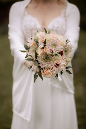 Brautsträuße in Blush- und Apricottönen wirken zart, warm und besonders romantisch. Die weichen Farbnuancen verleihen dem Strauß eine elegante Leichtigkeit und unterstreichen eine feminine, harmonische Ausstrahlung. Diese Farbkombination passt hervorragend zu natürlichen, modernen und klassischen Hochzeitskonzepten und lässt sich wunderbar mit feinen Grünakzenten ergänzen. Blush und Apricot schaffen eine sanfte, zeitlose Farbwelt voller Wärme und Gefühl.